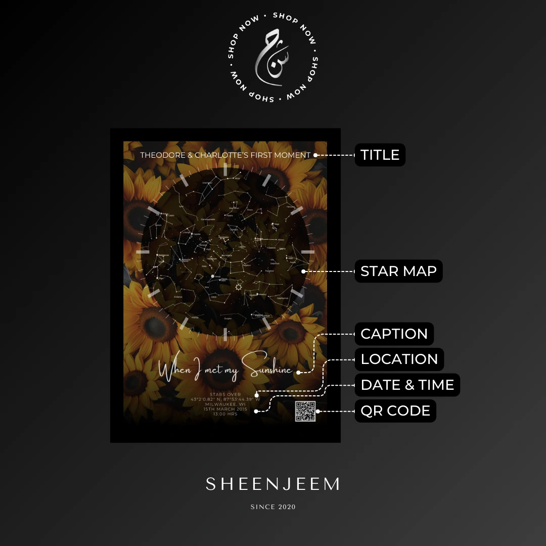 The brightness, happiness, and joy is best represented in the yellow flora star map full of sunflower backdrop that signifies the grand amazement of the stars above.